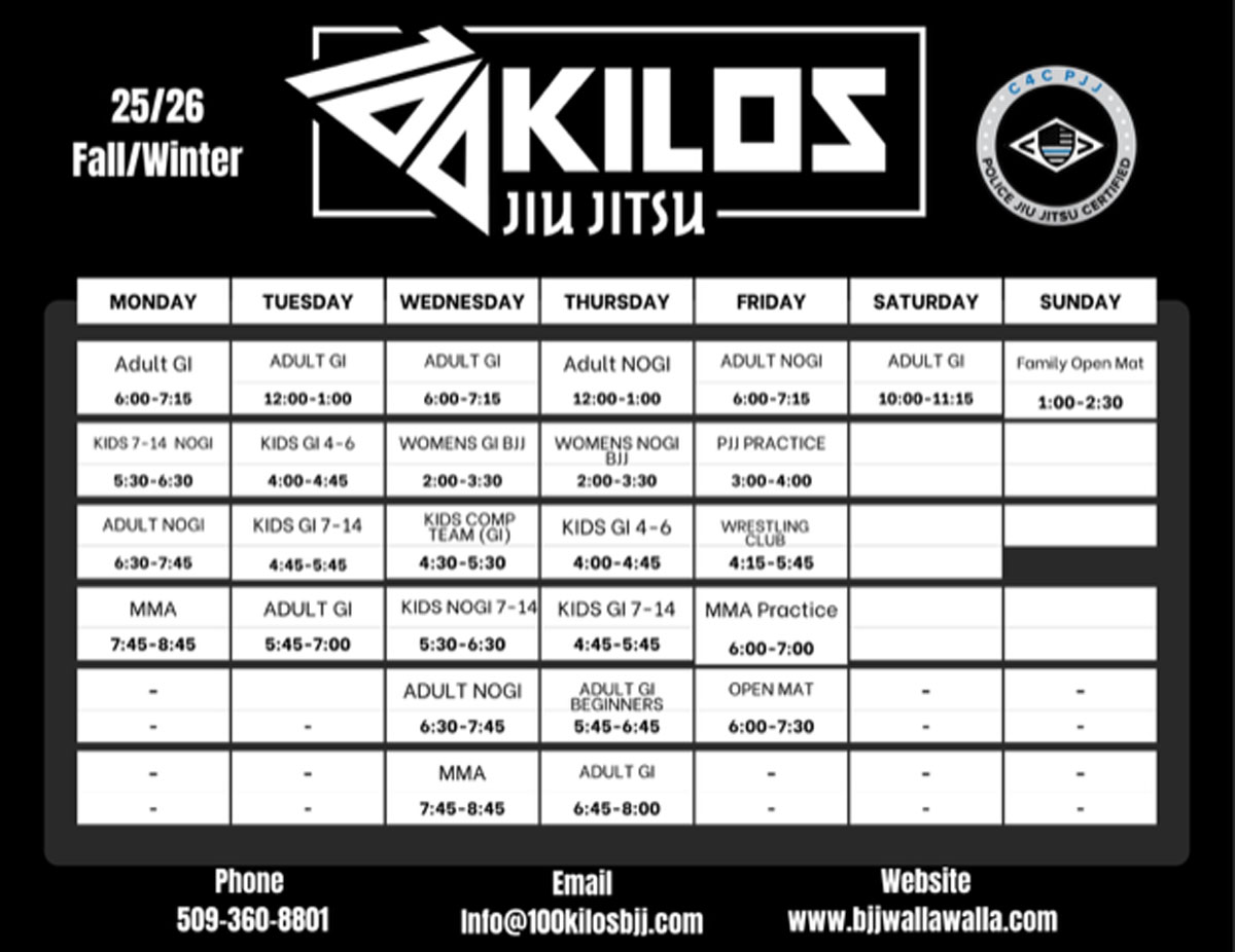 100 Kilos Jiu Jitsu Schedule